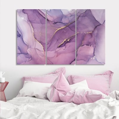 Liquid Purple Marble Print Wall Art Fine Art Canvas Prints Vertical Format Pictures For Modern Living Room Bedroom Nordic Home Decor (Set of 3)