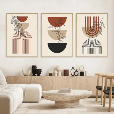 * Featured Sale * Set of 3Pcs Abstract Geometric Botanical Wall Art Fine Art Canvas Prints Neutral Colors Pictures For Living Room