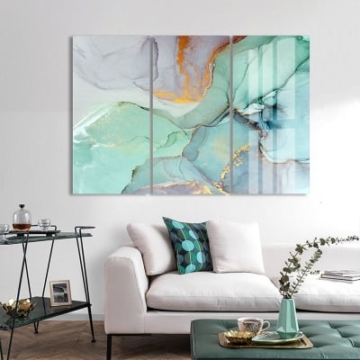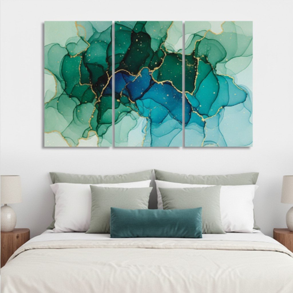 Liquid Teal Marble Print Wall Art Fine Art Canvas Prints Vertical Format Pictures For Modern Living Room Bedroom Nordic Home Decor (Set of 3)