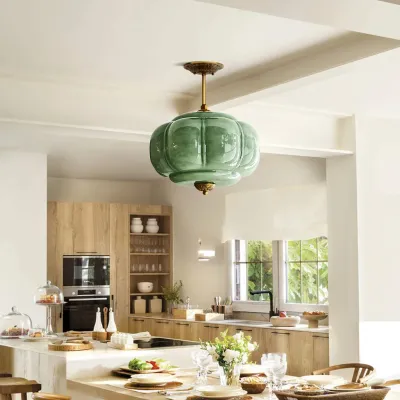 Liora Vintage Brass Pumpkin Glass Pendant Light