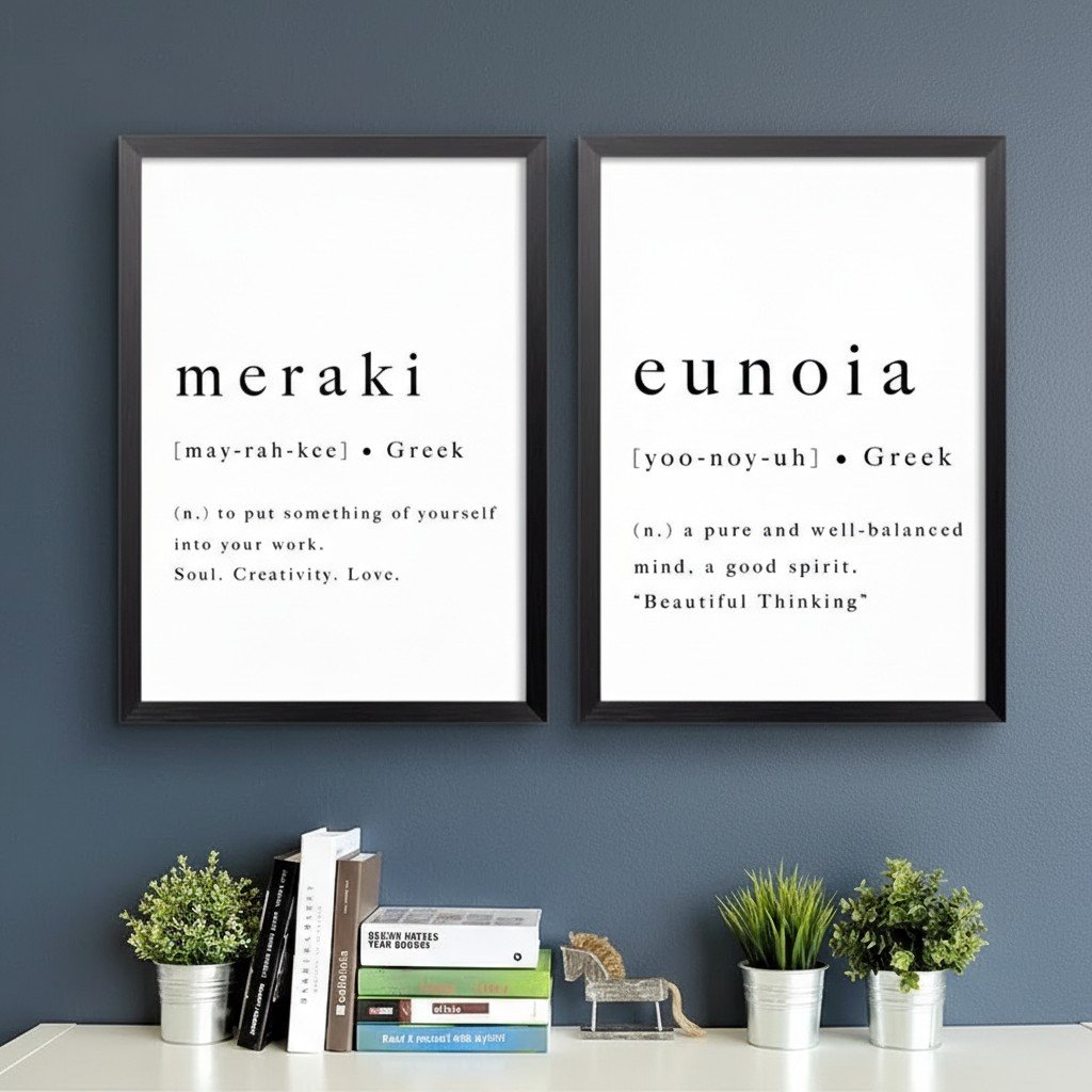 Meraki Definition, Simple Greek Proverbs, Wall Art, Exquisite Art Canvas Prints, Eunoia Meaning, Inspirational Daily Quotes, Minimalist Posters, Kitchen Wall Decor